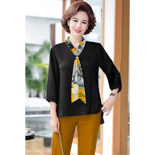 ĐẸP - Áo Kiểu Trung Niên Giấu Bụng Bigsize Dạng Áo Kiểu Quý Bà Kèm Phụ Kiện - Thời Trang U50-60 Cho Người Mập 3A23 3A05