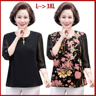 NHIỀU SIZE - Áo Kiểu Trung Niên Size Lớn Dạng Áo Sơ Mi Trung Niên Thời Trang U50-60 In Họa Tiết 3A26 3A27 3A28 3A29
