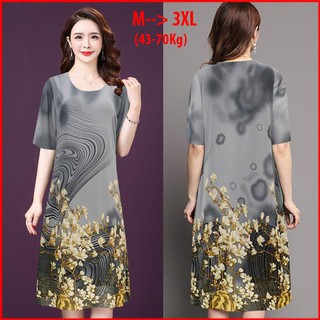 Nhiều Màu - Đầm Trung Niên Suông Dáng Dài Tuổi 50 Kiểu Đầm Suông Cổ Tròn In Họa Tiết 3D Cao Cấp 3345 3346 3336