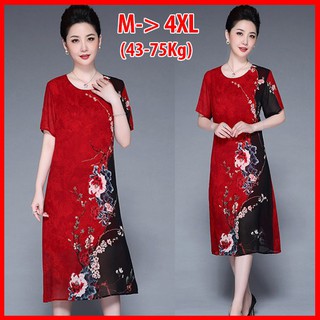 Đầm Suông Dáng Dài Tuổi Trung Niên Dự Tiệc Cấp In Hoa Lá Phối Màu Vải Lụa Cho Mẹ U50 3333 3334