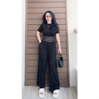 Set bộ nữ quần dài phối áo thun _set gân tăm siêu đẹp _set 1 màu y hình _cá tính set bộ nữ mặc nhà ,đi chơi Sen boutique