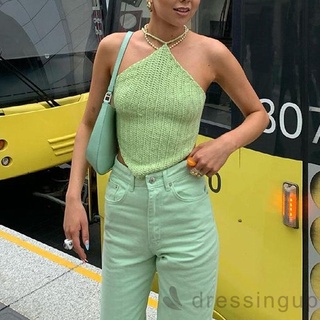 Áo hai dây dệt kim màu trơn thời trang mùa hè cho nữ