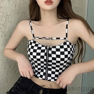 Áo Hai Dây Họa Tiết Kẻ Ô Vuông Thời Trang Cho Nữ