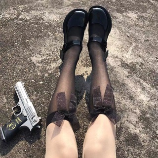 Vớ Lưới Phối Nơ Đen Thoáng Khí Gợi Cảm Phong Cách Harajuku
