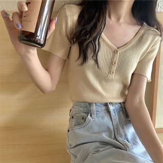 Áo Dệt Kim Tay Ngắn Cổ Chữ v Dáng Ôm Thời Trang Mùa Hè Phong Cách Hàn Quốc 2022 Cho Nữ