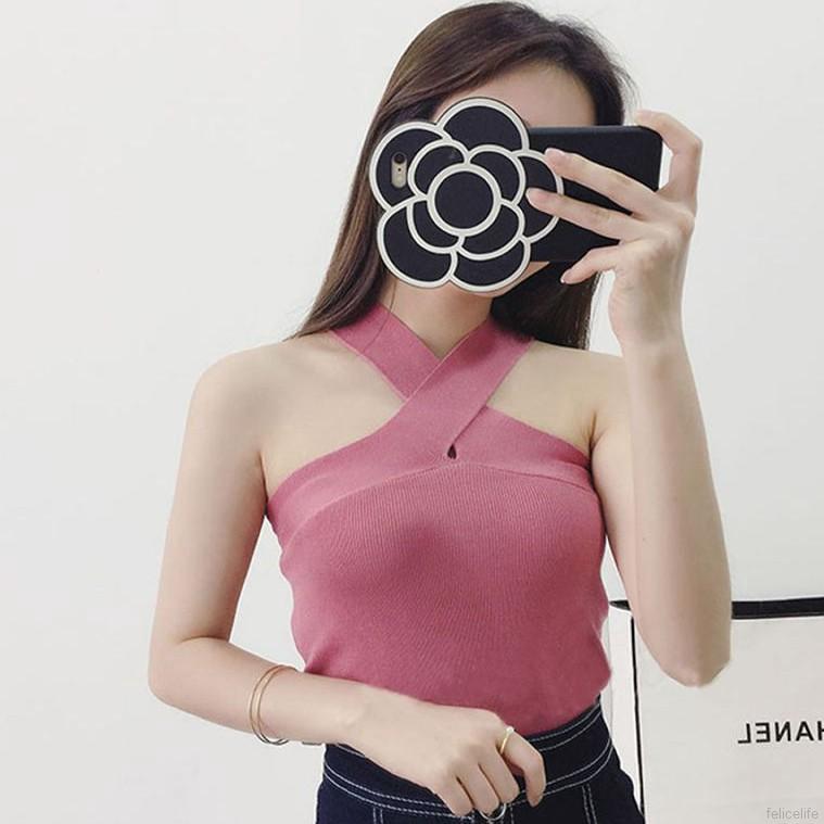 Áo yếm dệt kim thiết kế màu trơn cá tính cho nữ