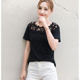 Áo tay ngắn phối lớp ren hoa xinh xắn cho nữ