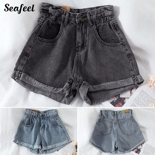 Quần Đùi Jeans Denim Lưng Cao Ống Rộng Hợp Thời Trang Cho Nữ