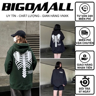 Áo Khoác Bộ Xương Trái Tim Chất Nỉ Cotton Mũ 2 Lớp Dày Dặn BIGOMALL