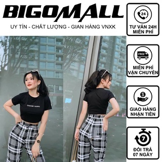 Sét áo croptop CHOOSE HAPPY + quần kẻ caro đen BIGOMALL