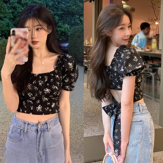 Áo Kiểu Cổ Vuông Tay Phồng Cột Dây Hở Lưng In Họa Tiết Hoa Quyến Rũ Thời Trang Cho Nữ
