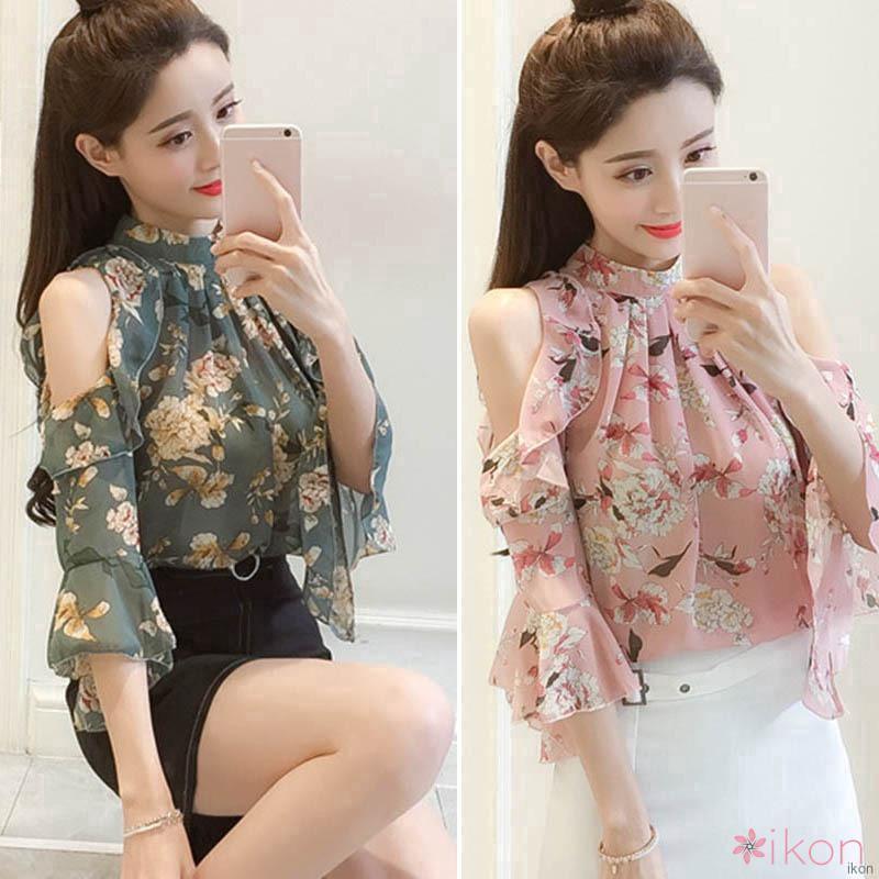 Áo voan trễ vai in họa tiết hoa quyến rũ dành cho nữ