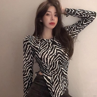 Áo thun tay dài cổ tròn in hoạ tiết ngựa vằn xinh xắn dành cho nữ