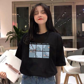 Áo thun tay ngắn họa tiết hoạt hình thiết kế dáng rộng che khuyết điểm
