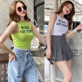 Áo lửng sát nách cổ tròn hoạ tiết chữ cho phái nữ