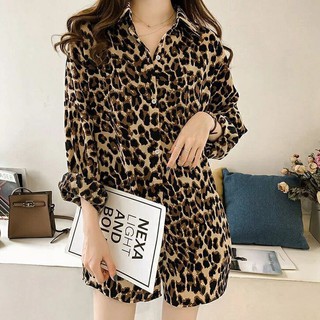 Áo sơ mi cổ bẻ tay dài hoạ tiết da báo cho nữ sơmi nữ