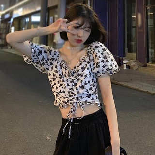 Áo kiểu tay ngắn cổ chữ V thời trang mùa hè Hàn Quốc cho nữ