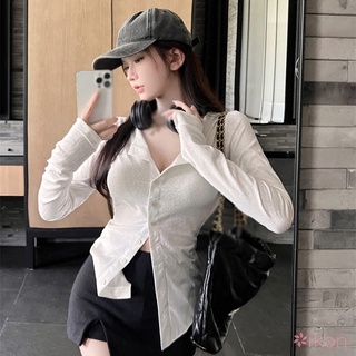 Áo Thun Lửng Tay Dài Khoét Lỗ Quyến Rũ Phong Cách Hàn Quốc Cho Nữ