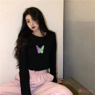 Áo Tay Dài Dáng Ôm In Hình Bướm Phản Quang Thời Trang Mùa Thu Cho Nữ
