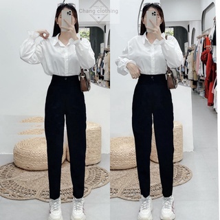 Quần Tây Baggy Nữ 2 cúc Khuy Cạp Liền Mẫu Mới Siêu Hot Quần Tây Nữ Lưng Cao Đi Học Công Sở Vải Đen Mềm Ống Đứng Dáng Dài