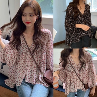Áo Nữ Tay Dài Cổ Chữ V Họa Tiết Hoa Thời Trang Quyến Rũ