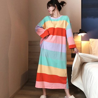 Đầm ngủ dáng rộng hoạ tiết kẻ sọc màu cầu vồng nổi bật
