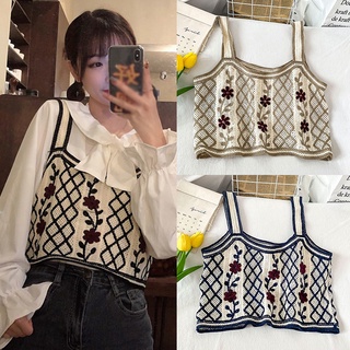 Set Áo Lửng Hai Dây + Áo Khoác Dệt Kim Màu Sắc Đơn Giản Phong Cách Hàn Quốc