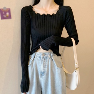Áo dệt kim tay dài màu trơn dáng ôm thời trang mùa thu phong cách Hàn Quốc cho nữ