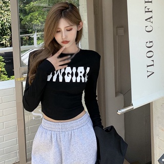 Áo Thun Tay Dài Cổ Tròn In Chữ Dáng Ôm Thời Trang Mùa Thu Quyến Rũ Cho Nữ