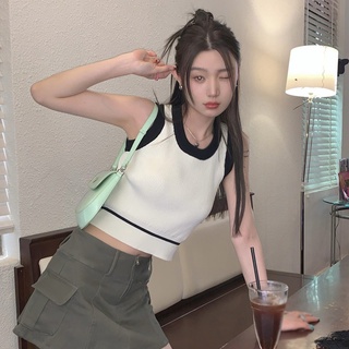 Áo Tank Top Cổ Tròn Màu Tương Phản Thời Trang Mùa Hè Cho Nữ