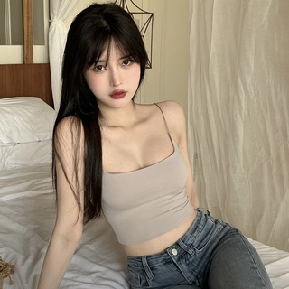 Áo Hai Dây Màu Sắc Trơn Có Đệm Ngực Phong Cách Hàn Quốc
