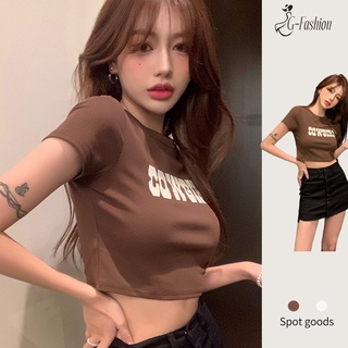 Áo Thun Croptop Tay Ngắn Dáng Ôm Màu Kaki Có In Chữ Tiếng Anh Thời Trang Hàn Quốc Mùa Hè 2022 Áo Nữ