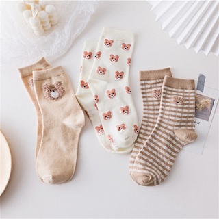 Vớ cổ trung thêu hình gấu hoạt hình thoáng khí thoải mái cho nữ