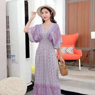 Đầm Cotton Lụa Hoa Tay Ngắn Cổ Chữ v Thời Trang Dành Cho Nữ