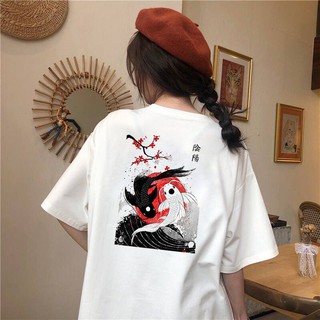 Áo thun tay lỡ form rộng họa tiết cá chép phong cách Nhật Bản vải dày mịn 2020T2472