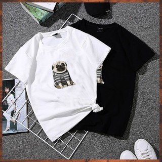 Áo thun unisex tay lỡ form rộng chó pug dễ thương vải dày mịn 2020TN1059