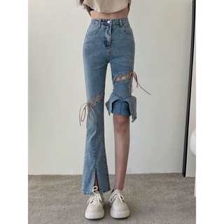 Quần Jeans Dài Ống Loe Xẻ Tà Thời Trang Dành Cho Nữ