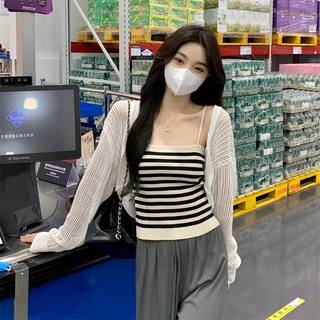 Áo Hai Dây Dệt Kim Kẻ Sọc Nhỏ Thời Trang Mùa Hè Cho Nữ