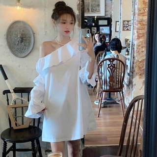 Đầm Trễ Vai Tay Dài Nhún Bèo Phong Cách Mới Dành Cho Nữ