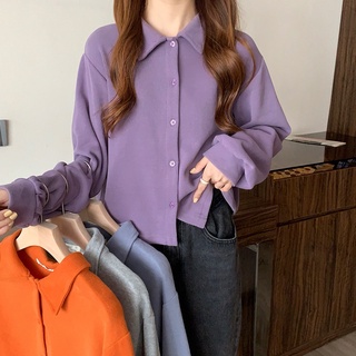 Áo sơ mi SUXI tay dài màu trơn phong cách Hàn Quốc nữ tính