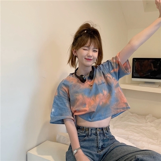 SUXI Áo croptop tay ngắn dáng rộng trẻ trung thời trang cho nữ