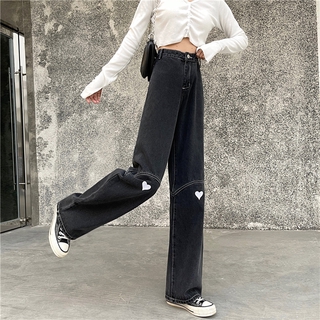 SUXI Quần Jean Dài Dáng Rộng Lưng Cao Phong Cách Hàn Quốc Thời Trang Nữ Cá Tính