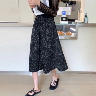 SUXI Chân váy chữ a lưng cao họa tiết chấm bi màu đen thời trang mùa hè cho nữ