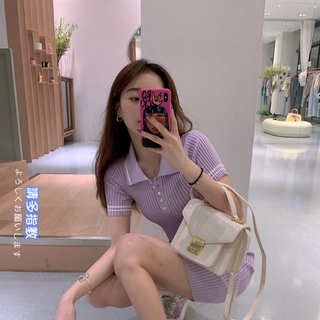SUXI Đầm dệt kim cổ bẻ kiểu dáng thời trang cho nữ