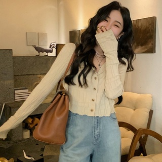 SUXI Áo dệt kim mỏng tay dài dáng ngắn thời trang mùa thu Hàn Quốc dành cho nữ