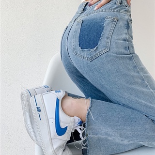 SUXI Quần jean dài ống rộng lưng cao dáng ôm phong cách Hàn Quốc cổ điển dễ phối đồ dành cho bạn nữ