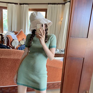 SUXI Váy len sọc dáng ôm theo phong cách Hàn Quốc