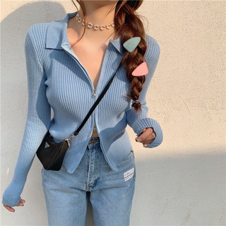 SUXI Áo Khoác Cardigan Bằng Vải Dệt Kim Tay Dài Phối Dây Khóa Kéo Phong Cách Hàn Quốc Thời Trang Mùa Thu Cho Nữ