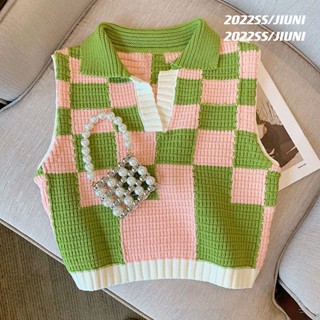 Áo Dệt Kim Không Tay Cổ polo Màu Sắc Tương Phản Thời Trang Dành Cho Nữ tao bao