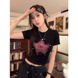 Áo Thun Cotton Tay Ngắn Dáng Ôm In Hình Ngôi Sao Thời Trang Hàn Quốc